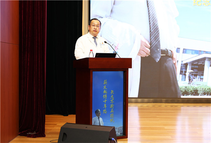 北京天坛医院党委书记管仲军作主题为“传承‘王忠诚精神’ 接续奋斗迎接转型发展新未来”的报告。
