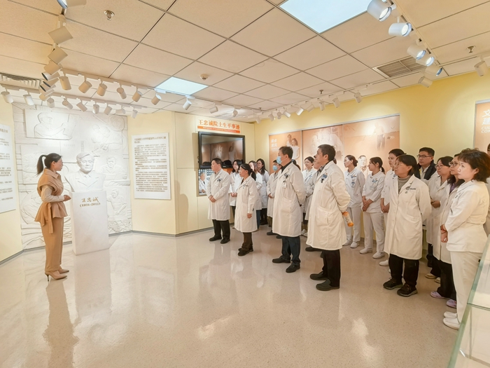 活动伊始,全体人员怀着崇敬的心情参观了王忠诚院士纪念展室。通过详实的图文资料与珍贵实物,大家深入了解了王忠诚院士献身医学、矢志创新的光辉一生。随后,集体观看了纪念视频《忠诚铸辉煌》,王忠诚院士在艰苦条件下勇攀医学高峰的感人事迹、对神经外科事业的卓越贡献以及其身上所体现的“忠诚”精神内核,深深触动了在场的每位同志,使大家深刻感受到了榜样的磅礴力量。