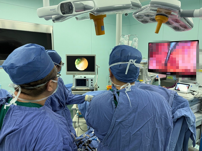据了解,患者 5 年前体检发现胆总管结石但未及时治疗,近年来逐渐出现上腹部胀痛,且进食后症状加重。此次复查时发现,不光是胆囊和胆总管,连肝内胆管都长满了结石。传统治疗中,这种程度的肝内外胆管结石,并且胆囊三角区解剖已经非常困难的情况下,特别是肝内结石的位置很深,达到了2-3级肝内胆管的位置,往往需要开腹手术。即便开腹手术也很难完全把结石取干净。不仅创伤大、恢复慢,还可能面临结石残留,进而引发术后胆道感染、结石复发甚至多次手术的风险,治疗难度极高。