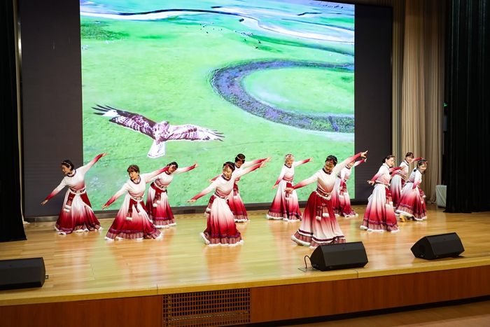 在温馨热烈的氛围中,退休老同志们奉献了精彩纷呈的文艺演出。合唱《花又落》《世界赠予我的》旋律悠扬,诗朗诵《诗意中国》情感真挚,舞蹈《卓玛》展现出昂扬向上的精神风貌,生动体现了天坛离退休职工老有所乐、积极乐观的生活态度。最后,与会领导与老同志合影留念,团拜会在欢声笑语与美好祝福中圆满落幕。