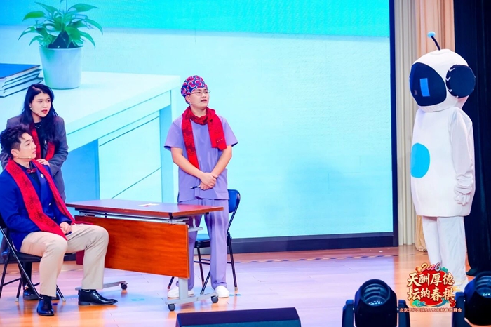 来自全院19个分会的200余名职工依次走上舞台,带来形式多样、精彩纷呈的文艺节目,充分展现了“天坛人”多才多艺的风采与昂扬向上的精神面貌。从再现医者楷模光辉事迹的原创话剧《王忠诚》,到尽显东方韵味的古典舞《上铃鼓》;从诠释医者仁心的情景歌舞《奉献》,到传递并肩作战情谊的表演唱《像你这样的朋友》;从大气磅礴的歌舞《春风十万里》,到幽默诙谐的职场轻喜剧《总裁请就诊》…… 整场演出洋溢着欢乐祥和的节日气息,一个个饱含真情与活力的节目,既温暖了人心,也鼓舞了干劲。