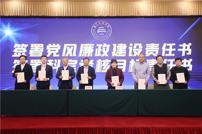 会上,党委副书记贾旺,常务副院长王伊龙,纪委书记任静,副院长巢仰云、李子孝、李德岭和总会计师刘菊梅分别对分管领域2025年工作进行回顾、点评,并部署2026年工作。党委书记岳小林、院长王拥军分别与党总支和业务科室代表签定党风廉政建设责任书和业务科室责任书。