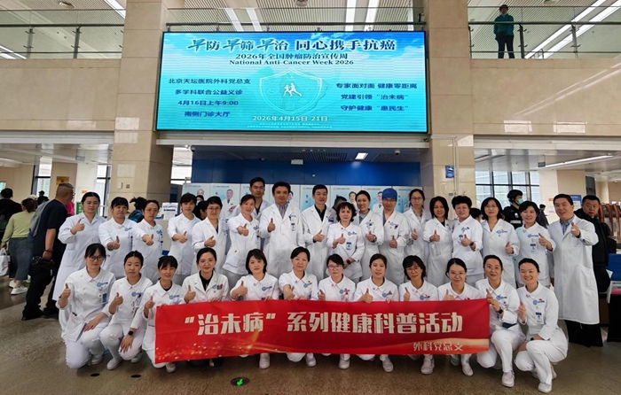 2026年4月15日—21日为全国肿瘤防治宣传周。为积极践行肿瘤“早发现、早诊断、早治疗”科学防治理念,深入开展健康科普惠民服务,切实守护群众身体健康,北京天坛医院外科党总支于4月16日开展多学科联合大型公益义诊活动,汇聚各领域权威专家,为广大市民提供专业、贴心、一站式健康诊疗服务。