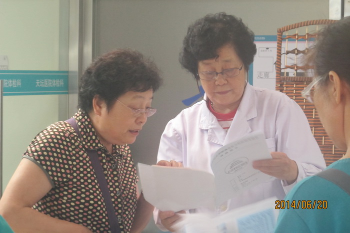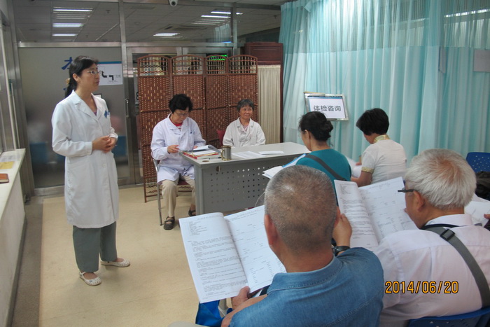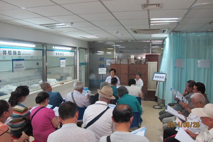 6月20日体检科为仪表技校退休人员集中进行了一次团体体检报告解读讲座。随着人们追求健康的理念不断增强,虽然是炎炎夏日,骄阳似火,许多人提早来到现场等候。1点半活动准时开始,首先科主任孟莉介绍了此次活动的意义,然后由王素秋主任就仪表技校退休人员体检报告有针对性的进行了解读,同时还向大家宣讲了老年人常见的高血压、糖尿病、高血脂、高血糖等疾病的日常保健知识。号召大家“管住腿,迈开腿;八分饱,八杯水;好心态,常开心……!”胡绥苏主任针对妇科宫颈TCT检查的结果,以及老年女性日常生活常识向大家进行了解读。大家听得很认真,意犹未尽,有的还做了笔记。讲座结束后,体检科的专家还对大家进行了一对一的讲解和用药咨询。