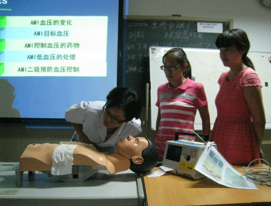 老年病科肩负着对老年期疾病患者进行全面诊治及急救的任务,全体医护人员面临着巨大的挑战。针对这一现状,我院老年病科自成立以来开展了一系列的专业培训,由老年病科及神经内科、心内科、急诊科及消化内科等兄弟科室的专家进行授课,内容涉及老年期常见疾病,包括老年期神经变性疾病、癫痫持续状态、睡眠障碍、高血压、急性冠脉综合征、呼吸衰竭、急性左心衰、心律失常及消化系统疾病等。针对老年病科服务对象的特殊性还进行了医患沟通技巧的培训。除了理论授课,授课专家还对每个医生进行心肺复苏的亲历亲为的指导,收到理想的效果。