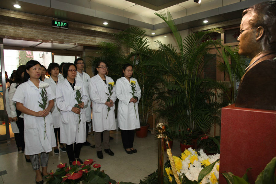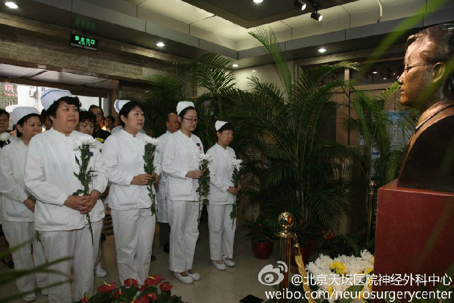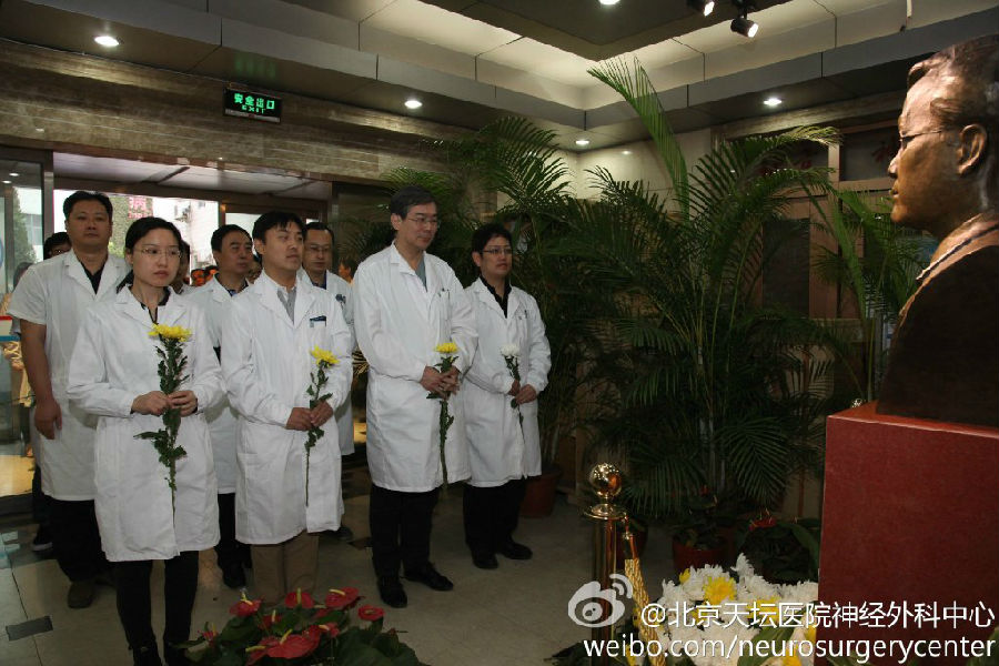 2014年9月30日是王忠诚院士逝世2周年。今天又适逢首个“烈士纪念日”,为激励和感召后人践行王忠诚院士精神,在天坛医院党委的支持下,研究所党支部与神经外科党支部共同举行以“记忆历史、勿忘先辈,追思先人励后人”为主题的王忠诚院士公祭活动。今晨7:30分,研究所张亚卓所长、天坛医院张力伟副院长、研究所江涛副所长、神经外科主任张俊廷、神经外科副主任刘丕楠、王硕、高之宪、张建国、季楠等,240余名研究所职工和神经外科医护人员一起在研究所一楼大厅向王忠诚院士铜像三鞠躬,敬献鲜花,表达缅怀追思之情。