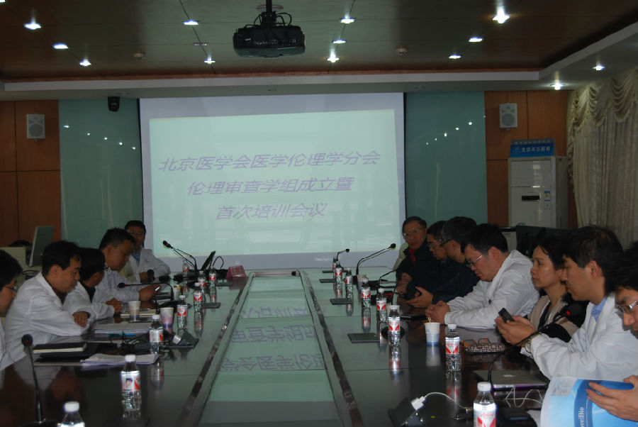 基于我院医学伦理委员会取得的成绩,北京医学会医学伦理学分会高金声主任委员委托北京医学会医学伦理学分会常任理事王晨院长组建伦理审查学组,并承办学组的首次培训。在王晨院长与宋茂民书记的领导下,我院伦理委员会办公室邀请首都医科大学宣武医院、北京大学第一医院、北京大学第六医院、北京大学人民医院、北京协和医院、301医院、302医院参与学组的组建工作,并得到了这几家医院领导及同仁的大力支持。经过半年多的认真准备,与被邀请医院和学会的积极协调,同时请教学会其他学组老师的组建经验,学组成立会议于10月23日在我院办公楼第一会议室顺利进行,王晨院长主持会议。