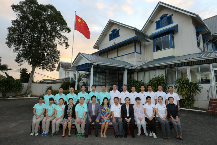 1月28日下午,北京市卫生计生委国合处刘畅率领两批医疗队到达中国驻特多大使馆。黄星源大使和使馆主要工作人员会见医疗队成员,并对第二批新队员表示热烈欢迎。我院医疗队队长贾旺向黄大使汇报了未来6个月的工作计划。我院院长办公室主任李娜介绍了医疗队过去几个月培训和准备的情况。黄大使对医疗队的工作表示肯定,勉励大家扎实工作,将中特合作推向深入。( 宣传中心赵晶晶 神经内科杜万良 普外科郑建伟 )