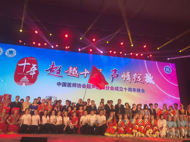 2017年正值中国医师协会超声医师分会成立十周年之际,超声医师分会还举办了十周年庆典晚会,来自全国三十个省市自治区的超声医师自编自导自演了文艺演出进行庆祝,精彩纷呈的节目充分展现了超声人多才多艺的另一面!