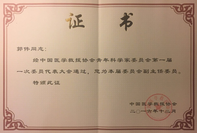 中国医学救援协会青年科学家委员会成立大会 我院急诊科郭伟主任当选副主任委员