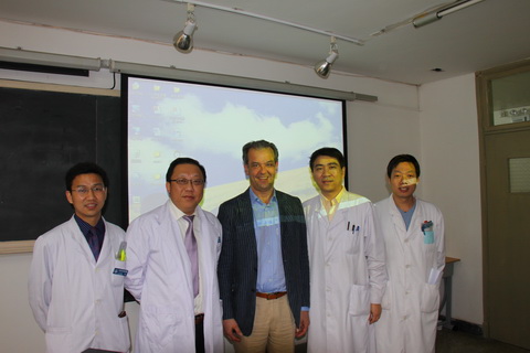Dr.Lagast Joost是比利时根特医院骨科主任,他在髋、膝关节置换手术等方面造诣颇深,并具有丰富的临床经验,目前他个人已完成髋、膝关节置换手术均超过4000例。研讨会上,Dr.Lagast Joost主讲了髋关节表面置换术适应症、手术操作要点的同时回答了常规髋关节置换假体选择中常见的一些疑难问题,并对复杂病例假体设计提出依据偏心距及软组织平衡等调节假体颈的长短、前倾、后倾角及髋内翻、外翻定制假体,强调个体化治疗。骨科副主任潘海涛主任医师介绍了骨科关节置换术开展的现状,双方就相关问题进行了仔细交流。并确定了未来的学术交流及年轻医师培养计划。