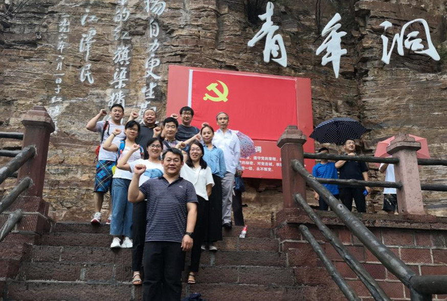当天,虽然下着蒙蒙小雨,但党员们的学习热情一点不减。大家首先参观了红旗渠纪念馆。通过导游细致的讲解并结合馆内的场景设置,大家对红旗渠的前世今生和红旗渠精神有了初步了解。之后,大家沿着山路,在红旗渠最险要的路段青年洞旁,怀着激动的心情在党旗下重温了入党誓词。