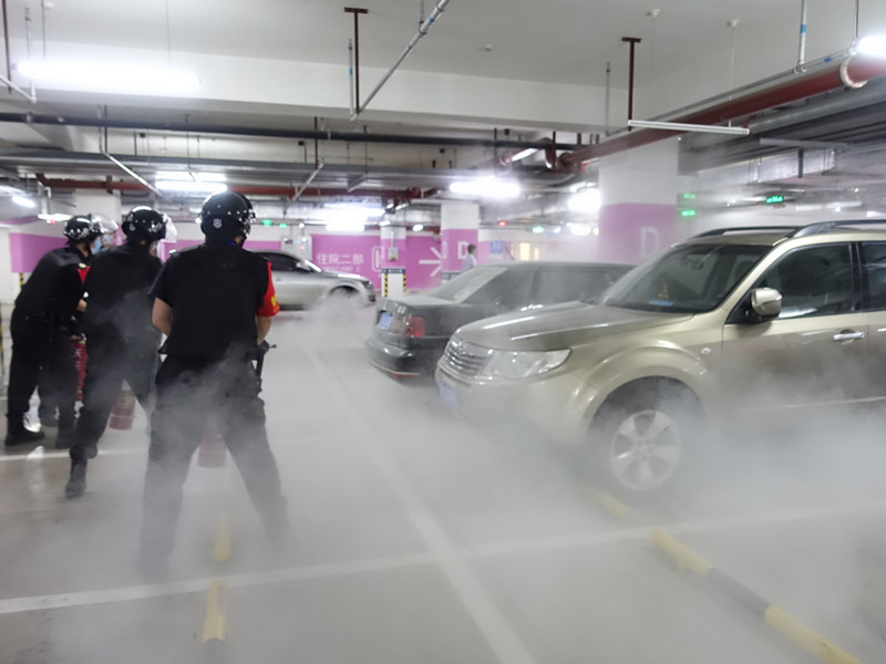 15:10分,A区住院二部地下三层停车场发生车辆自燃事件,巢仰云启动手动火灾报警按钮。A区消防指挥中心接到火灾报警信号后,立即组织指挥就近岗保安员、微型消防站、应急救援分队在“1、3、5”分钟内赶赴事发现场处置火情、维持秩序。在就近岗保安员到达事发现场前,停车管理工作人员第一时间配合消防人员将附近车辆移位至安全区域,为下一步灭火降低财产损失。