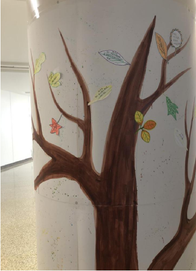 本次公益体验活动包含两个主题——“焦虑与希望”和“我珍视的事物”。参与者们自己创作两片彩色的叶子,在上面分别写下自己的焦虑和心里的希望,将叶片贴在海报的树枝上,让它发芽生长。而在“我珍视的事物” 活动里,参与者们得以有机会停下来反思自己已经拥有的东西,并在一个大罐子里存下自己所拥有的、珍视的事物。活动结束后,这次活动创作的艺术作品还会门诊区域继续保留,伫立在门诊的这棵树和这个罐子将继续承载患友们的忧虑和希望,给他们带来抚慰和信念。