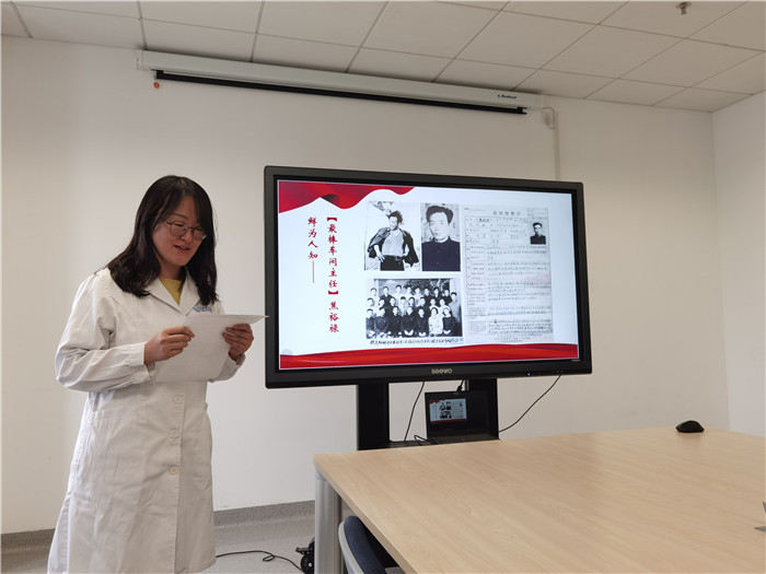 我们以党史故事朗诵会的形式召开了本次主题党日活动,给大家提供一个学习交流和学习成果展示的平台。新入职职工王春阳同志的《南昌城头的枪声》讲述了1927年8月1日南昌起义那段波澜壮阔的历史;共青团员姜春飒同志的《百团大战胜利》展示了抗日战争中我军参加兵力最多、规模最大、时间最长、战果最丰富的一次战役;青年党员安海婷同志的《鲜为人知 “最棒车间主任”焦裕禄》呈现了焦裕禄——这位感动一代又一代国人的县委书记榜样在大连起重机器厂担任车间代培主任的600多天里的点点滴滴,暴雨倾盆时带伤防洪抢险、脏活累活带头干、从工业“门外汉”成长为行家里手,他一切为了人民,人民从未忘记他。除了个人朗诵,在此次活动中,我们还聆听了由刘潜同志原创,刘红梅、李莹、刘潜等同志集体朗诵的《华夏战疫赋》,再现了2020年伊始新冠疫情肆虐华夏大地举国同心共抗疫情的情景。
