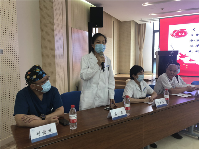 2021年6月25日,外科党总支举办了主题为“学党史、强信念”的党史知识竞赛,外科党支部、团支部、党员积极分子等共计60余人参加了本次活动。原北京天坛医院党委书记宋茂民,党委副书记肖淑萍,团委书记苏昕、无党派人士代表骨科主任刘宝戈、泌尿外科主任张勇等作为点评嘉宾参加了会议。比赛创新地采取了场上、场下同时答题的方式进行,除场上各党支部选手参赛外,到场观众均加入微信群作为“学习团”参与全程答题,充分调动了参会人员的积极性,大家全神贯注,全场答题氛围激烈。活动的亮点还在于答题点评过程中,点评嘉宾们围绕着五四运动、少共国际、红船精神、古田会议、党的十一届三中全会、中国特色社会主义等党史学习中的主要内容进行了拓展讲解,这些“微缩党课”让广大党员们受益匪浅。外科党总支此次活动别开生面地以新颖的竞赛形式展开,获得了良好的效果,外科人也将在继续理论学习的同时践行实践,把党史学习的成果转化在促进医院高质量发展的实践中,进一步做到学史明理、学史增信、学史崇德、学史力行。