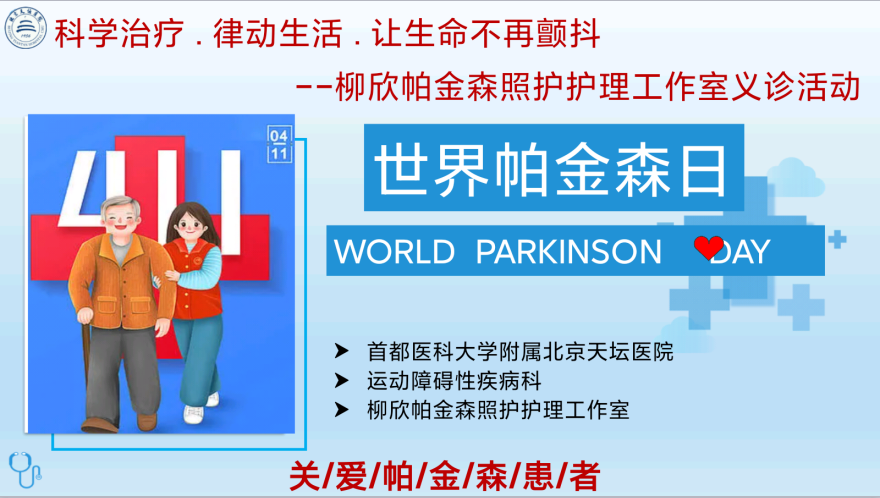 帕金森病是中老年人常见的中枢神经系统慢性退行性疾病,已成为中老年人的“第三杀手”。早期帕金森病典型临床表现为静止性震颤、肌强直、动作迟缓和行走困难等,疾病晚期可出现智力减退,最终将导致生活不能自理。为更好的宣讲帕金森疾病相关知识,提高人们对帕金森的认识,解答众多帕友心中的疑问,首都医科大学附属北京天坛医院“柳欣帕金森照护护理工作室”于2022年4月11日上午举行了以“科学治疗.律动生活.让生命不再颤抖”为主题的线上视频义诊活动,为帕友提供免费视频咨询,指导帕金森病日常居家照护、康复锻炼等。