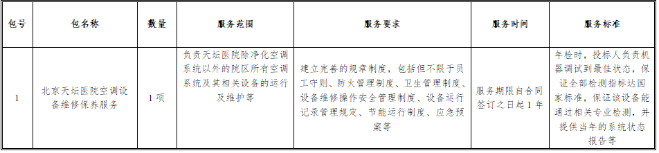 北京天坛医院空调设备维修保养服务-中标结果公告