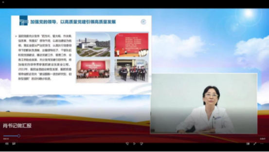 会议采取视频形式进行。肖淑萍从党建工作、医疗运行、学科发展、科研发展和离退休工作等五个方面进行通报。据介绍,2022年上半年医院紧密围绕全面启动转型发展,推动医院高质量发展,圆满完成上级布置的各项工作任务。