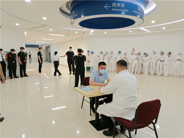 医院安保力量根据不同场景展开突发安全事件流程处置。演练结束后,全体参训人员复盘总结演练情况。北京市公安局丰台分局内保大队、北京市公安局丰台分局特警大队、北京天坛医院警务工作室民警分别给予点评和指导。北京市公安局丰台分局内保大队民警肯定了医院在加强医护人员安全防护方面所做的工作,希望医护人员提高安全防范意识,掌握必要的安全防护技能。北京天坛医院警务工作室民警结合演练过程中的不足介绍了处置突发事件的方法和技巧。北京市公安局丰台分局特警大队民警向保安员讲授了协同配合技巧、器械使用方法等处置技能。