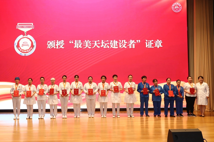 “时代的接力棒已经交到我们手中。”“最美天坛建设者”称号获得者代表、神经外科学中心血管1病区护士长袁巧玲表示,护理工作不仅仅是技术和服务,更是一种奉献和责任的体现,作为一名护理工作者,将始终秉持为患者提供最优质护理服务的信念,保持对患者的关注和关爱,及时帮助他们解决问题和改进工作。“让我们抓住时代机遇,共同为建设‘学术天坛、品质天坛、魅力天坛、幸福天坛、奋进天坛’而努力。”