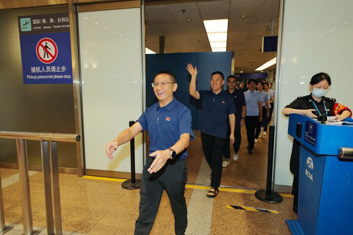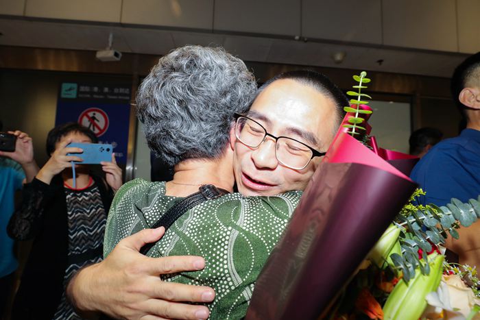 “落地了!”有队员第一时间给亲人发来微信,等待的人群顿时一阵兴奋,虽然明知队员们还要出关、取行李,但是大家仍然不由自主地望向出口。