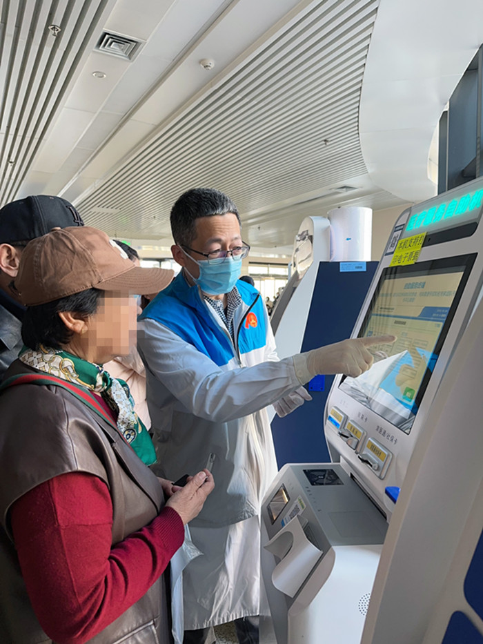 参加活动的15位同志首先一起重温了雷锋精神的重要意义,一起回顾在为患者精心治疗之余,化身志愿者或走进社区、基层传播健康知识,或在重大活动中提供医疗保障的经历。随后,党员和团员们分班次在门诊一部、二部、缴费窗口等人流量大的地点为患者提供贴心服务。他们发挥自身优势,用专业的知识和技能为患者提供准确的咨询和指导,耐心倾听患者的需求和问题,用简洁易懂的语言解释医院小程序和自助机使用方法,便于患者预约、缴费与治疗。针对不同患者的情况和需求,他们还提供了个性化的帮助,让就医患者感受到了充分的尊重、理解、关心。