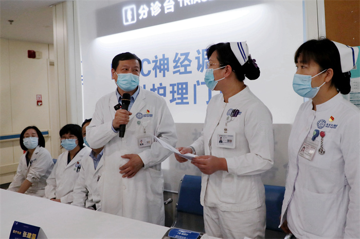 在神经外科门诊,神经外科学中心功能神经外科、MDC神经调控专科护理门诊、神外调控专病门诊联合,在专病管理、心理咨询、康复指导、科普教育及术后调控等几大模块向大众科普了帕金森病手术规范治疗的相关知识。