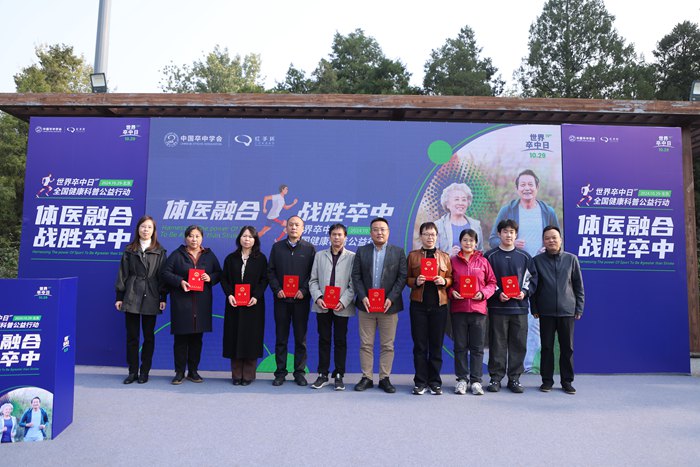 今年10月29日是第19个世界卒中日。当天,主题为“体医融合 战胜卒中”的世界卒中日全国健康科普志愿活动在全国展开。全国各地各级医疗机构卒中中心和2000余个红手环志愿单位的数万名医护人员通过义诊、健康讲座、高危因素筛查等形式,广泛推广卒中防治知识,引导公众践行体医融合的健康生活方式。