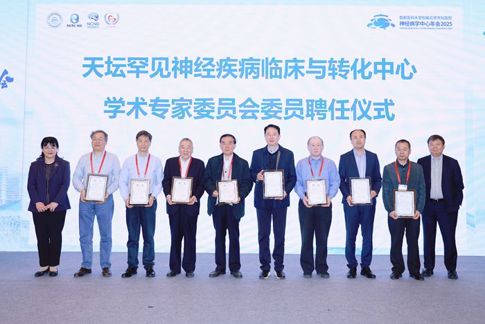 随后的聘任仪式上,北京天坛医院党委书记岳小林、院长王拥军为天坛罕见神经疾病临床与转化中心专家委员会委员颁发聘书。