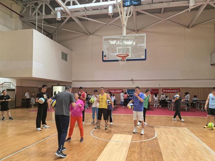 儿童青少年正处理生长发育的黄金时期,大脑健康是身心健康的基础。结合心理科前期多年医体融合促进青少年脑健康的科研工作基础,这次义诊特别安排了一场医生和患儿及家长共同参与的健脑体育课。在气排球高级教练王老师的指导下,由医生、护士、患儿及家长共同组成的“球友”团队,在运动场上,轻松愉快的一起上了一堂“减压又健脑的体育课”。大脑康复训练的课程被王教练巧妙地融入轻松有趣的气排球游戏中。孩子们在跑动、传球、扣球及球友们的协作中,自然而然地锻炼了感觉统合能力、手眼协调能力和团队协作精神。挥汗如雨的运动场上,大家欢声笑语,释放了压力,融洽了关系,锻炼了身体,也激活了大脑。下课后孩子们一张张愉快的笑脸和家长们露出久违的松弛感,生动的“医患互动”模式的体育课,让医体融合促进脑健康的理念更加深入人心。