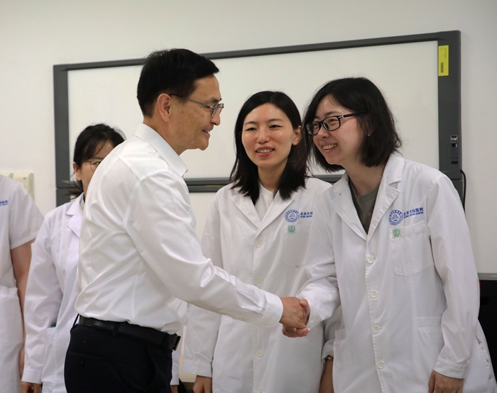 吉训明对北京天坛医院在医教研各领域取得的成绩表示肯定。他强调,学校与临床医学院要着力构建协同发展新格局,在学科建设、科研创新、人才培养等方面深化合作,互助互补;要切实改善科研条件,提升成果转化效能,完善后勤保障体系;要深化院校协同,推进医学教育改革,加快德育体系建设,为建设国际一流研究型医科大学、服务首都高质量发展作出更大贡献。