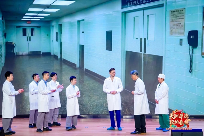 来自全院19个分会的200余名职工依次走上舞台,带来形式多样、精彩纷呈的文艺节目,充分展现了“天坛人”多才多艺的风采与昂扬向上的精神面貌。从再现医者楷模光辉事迹的原创话剧《王忠诚》,到尽显东方韵味的古典舞《上铃鼓》;从诠释医者仁心的情景歌舞《奉献》,到传递并肩作战情谊的表演唱《像你这样的朋友》;从大气磅礴的歌舞《春风十万里》,到幽默诙谐的职场轻喜剧《总裁请就诊》…… 整场演出洋溢着欢乐祥和的节日气息,一个个饱含真情与活力的节目,既温暖了人心,也鼓舞了干劲。