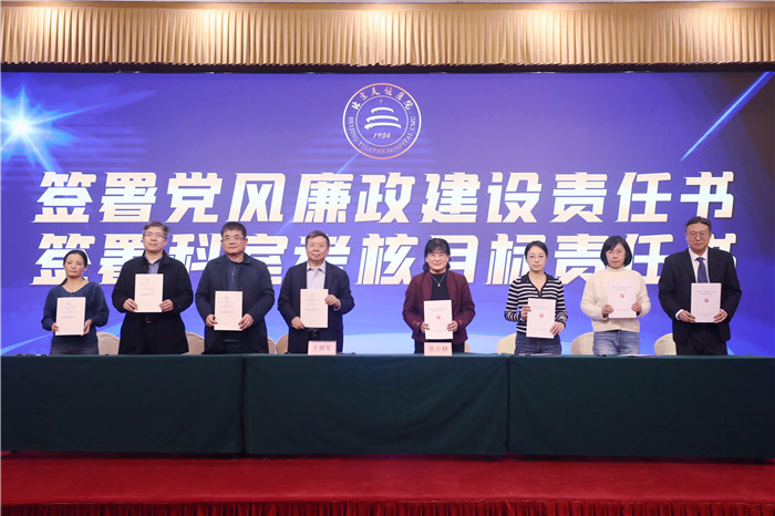 会上,党委副书记贾旺,常务副院长王伊龙,纪委书记任静,副院长巢仰云、李子孝、李德岭和总会计师刘菊梅分别对分管领域2025年工作进行回顾、点评,并部署2026年工作。党委书记岳小林、院长王拥军分别与党总支和业务科室代表签定党风廉政建设责任书和业务科室责任书。