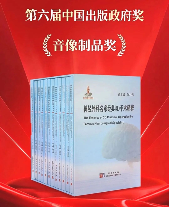 我国出版领域最高奖项第六届中国出版政府奖评选结果近日正式揭晓,由首都医科大学附属北京天坛医院神经外科学中心张力伟教授担任总主编,科学出版社中科数媒公司出版发行的《神经外科名家经典 3D 手术精粹》系列音像制品获得中国出版政府奖(音像制品奖)。