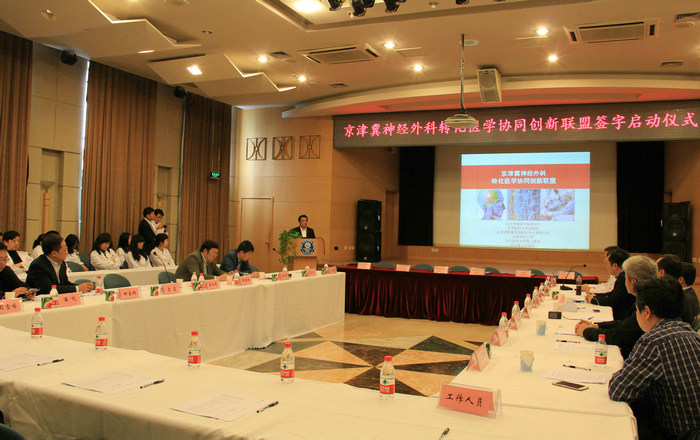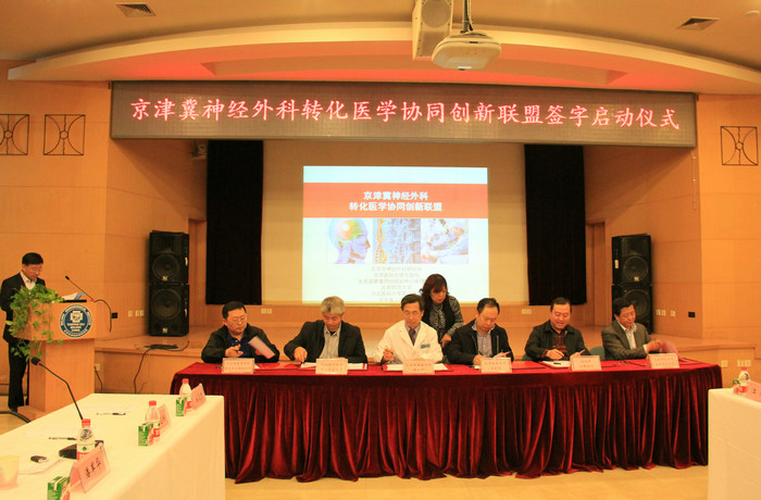 为进一步推进京津冀医疗卫生协同发展,促进基础和临床数据共享,增强神经外科临床及科研的整体性和协同性,提高科研效率和临床技术水平,北京天坛医院和北京市神经外科研究所倡议建立“京津冀神经外科转化医学协同创新联盟”,旨在建立一个医、教、研、防四位一体的综合性神经外科转化医学联盟。首批参与的医院及研究机构除了北京天坛医院、北京市神经外科研究所外,还有天津医科大学总医院、河北省人民医院、河北医科大学第二附属医院及北京师范大学生命科学学院等。