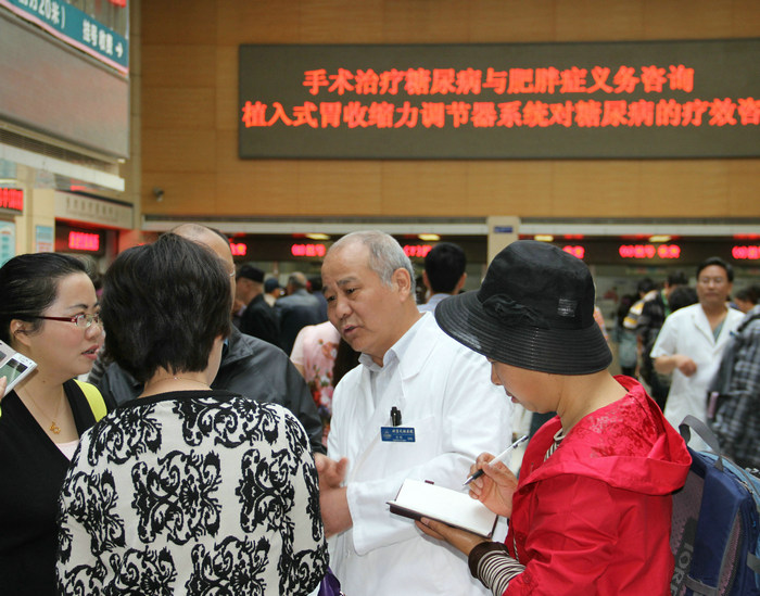 在世界防治肥胖日到来之际,为普及肥胖症及糖尿病治疗相关知识,首都医科大学附属北京天坛医院普外科5月7日举办“肥胖症与糖尿病治疗”义诊活动,院党委书记、外科学博士生导师宋茂民教授带领普外科医师现场为广大患者答疑解惑,宣传糖尿病治疗新技术——植入式胃收缩力调节器的功能,由此微创治疗糖尿病将正式进入临床治疗观察阶段。
