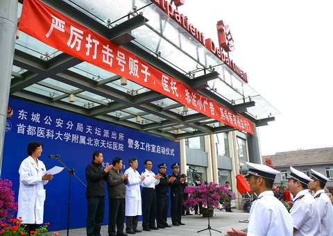 北京天坛医院与公安部门长期密切合作,北京市公安局东城分局专门在院内成立警务室,医警联手严厉打击“号贩子”。2015年前5个月,在东城分局天坛派出所主导下,医院保卫处与警务室开展打击“号贩子”专项清理整治行动40余次,100人次“号贩子”被警示训诫,20余人次“号贩子”被治安处理。