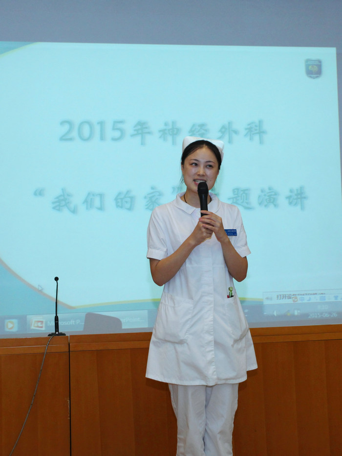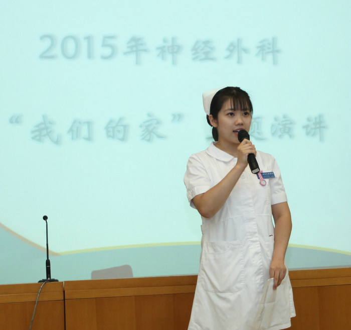 刚刚步入工作岗位一年的孙蕊演讲的题目是《我的家》,她用亲身经历,讲述了走进神经外科这个大家庭以后感受到的温暖。