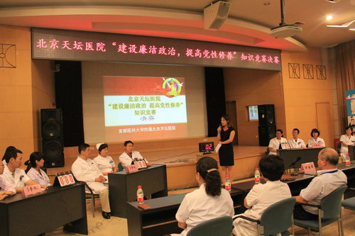 北京天坛医院党委在党的群众路线教育实践活动中,注重开展多种形式的学习,营造学习氛围,以确保学习效果。院党委组织党员、干部和职工认真学习党的十八大精神,学习党风廉政建设和反腐倡廉相关知识,学习并深刻理解新党章的内容。为检验学习效果,院党委开展“建设廉洁政治,提高党性修养”主题知识竞赛。