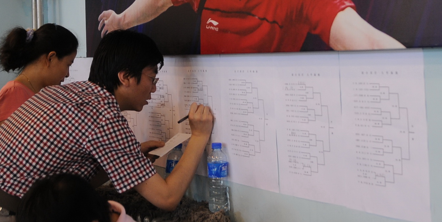 记分员认真登记成绩