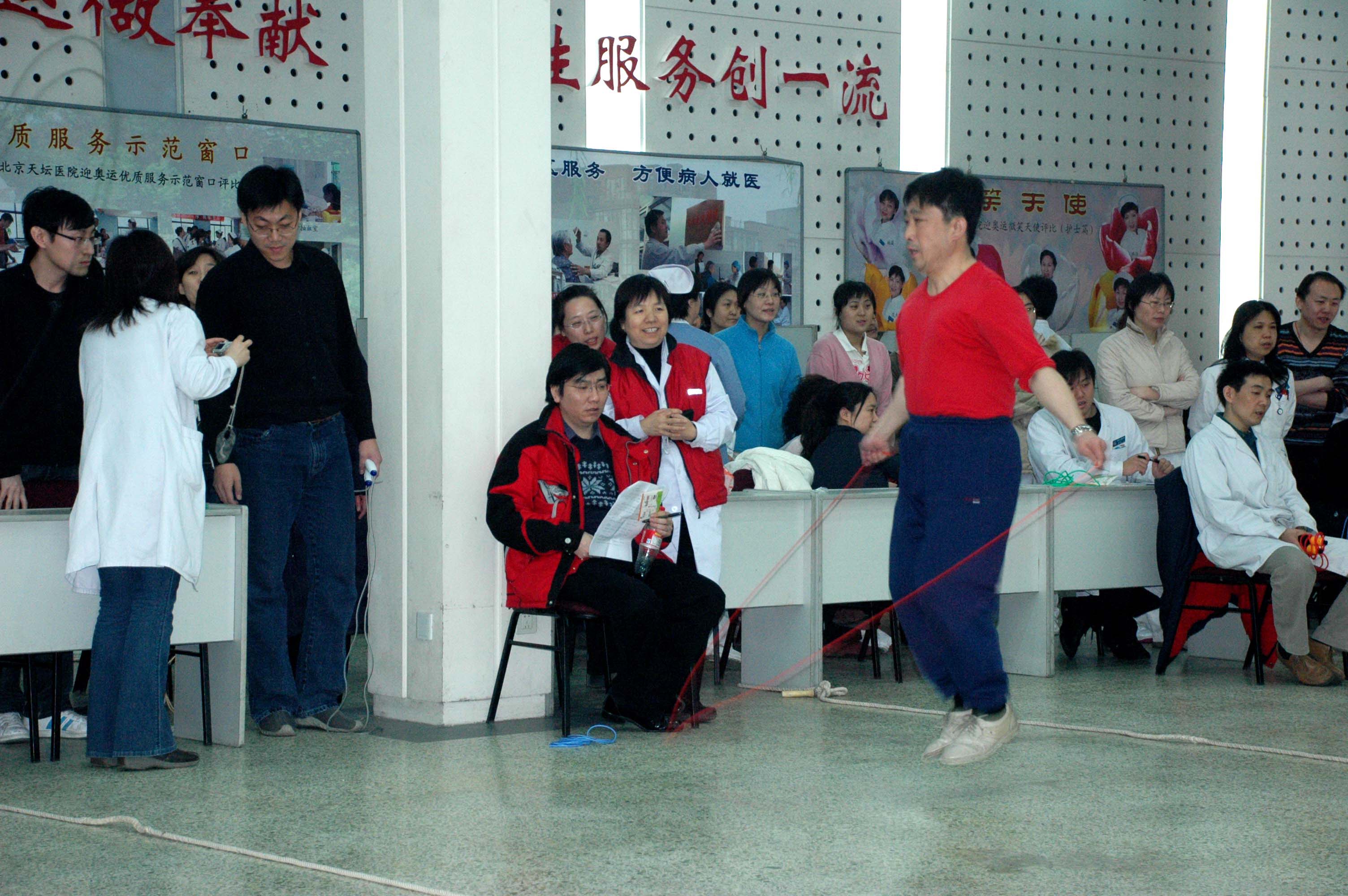 迎接“3.8”妇女节,工会组织职工踢毽、跳绳、抖空竹比赛。
