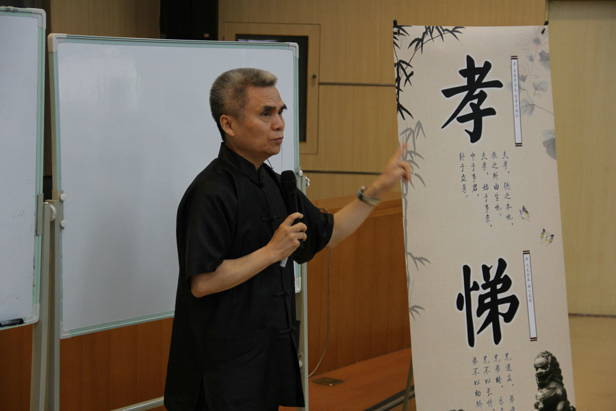 张辛教授从国学的复兴引入,讲到“国学”即“人学”,作为一个人不仅要有智慧更要有教养,作为一名中国人应该了解中华民族的传统文化。国学的基本精神是“道”“礼”“和”。他讲到,人是什么?人是“身”和“心”的共同体,这也是人区别于动物的本质。作为一个人,要有敬畏之心,要能意识到自我的局限性。教养说到底就是感恩、知恩图报。人类发展应该处理好天人关系、社会关系、人与自我的关系。落实到现实生活中,作为医务工作者,应该尊重每一个生命,平等对待每一位患者。在场聆听的职工都很受教育和启发。