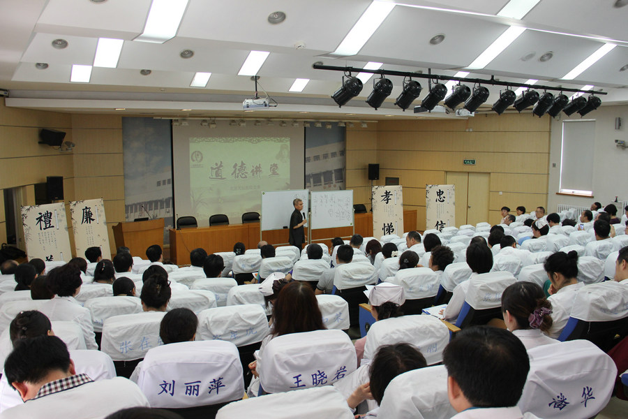6月17日,北京天坛医院“道德讲堂”在教学楼阶梯教室正式拉开帷幕,院所领导、中层干部和部分职工参加。第一讲的主讲嘉宾是北京大学教授、博士生导师张辛先生,他是我国著名学者、国学家,中国最早的考古学博士。他主讲的题目是《国学的基本精神与传统人文修养》。