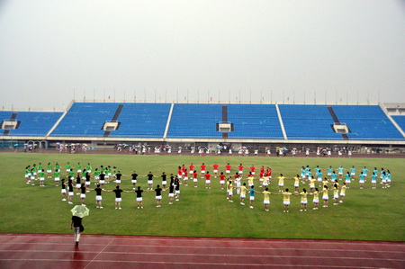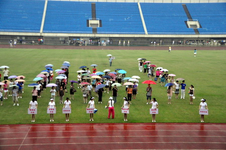 8月18日下午5点半,是我院预定在先农坛体育场进行2010年职工运动会入场式演练的时间。天公不作美,不到5点天空就淅淅沥沥的飘起了雨丝。虽是秋雨已有几分凉意,但丝毫也没有影响全院职工开好运动会的热情。运动会筹备组的工作人员和各分会入场式队伍一下班就急急忙忙的赶到体育场,准备在8月28日正式开会前,把运动会的准备工作和入场路线、队伍状态做一次全面的检验。