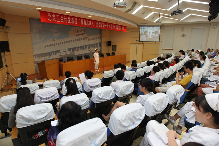 8月11日下午,北京卫生计生系统“最美北京人”宣讲团一分团首场报告会在我院阶梯教室举行。宣讲团由组织人事处副处长、调研员彭英姿带队,院党委副书记、纪委书记肖淑萍主持大会,180余名医护人员聆听了报告。