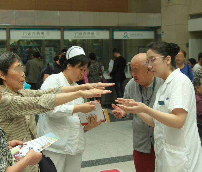 9月21日为 “世界阿尔茨海默病日”,为了关爱老年朋友的大脑健康,普及痴呆相关知识,帮助阿尔茨海默病患者提高生活质量,帮助患者家属提高照料技巧,北京天坛医院老年病科在张巍主任的带领下,在我院门诊大厅倾情举行了为期一天的健康宣教和义诊活动,发放健康手册,赠送爱心黄手环,启动了官方认证的“天坛老年病友之家”微信服务平台。
