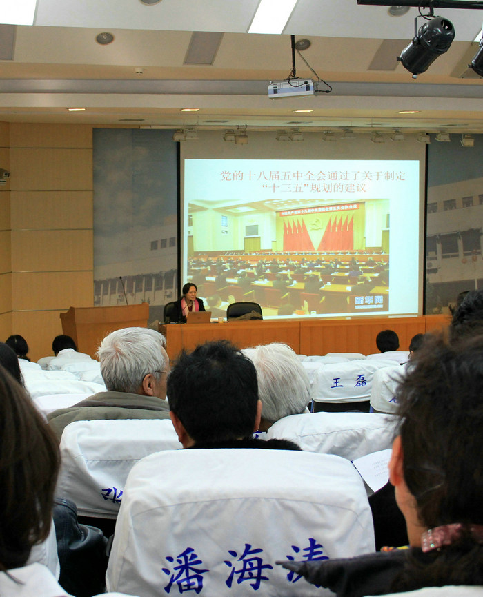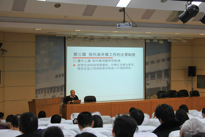 培训会后,院党委邀请中央党校向春玲教授为党代表作《共产党人要常照“五面镜子”》辅导报告。报告以“一面旗帜、两个百年目标、三期叠加、四个全面、五位一体、五大发展理念、六个坚持”为主线,分析了十八届五中全会以来新时期新战略新要求。报告提到,共产党人要履行好自己的社会角色,对共产党人的角色有明确认知,不断加强对角色的学习。以党章为镜,鉴定理想信念;以群众为镜,树立为民的工作作风;以党员先进典型为镜,保持共产党员的先进性;以党纪国法为镜,立“明规矩”、破“潜规则”;以时代要求为镜,明确责任与使命。