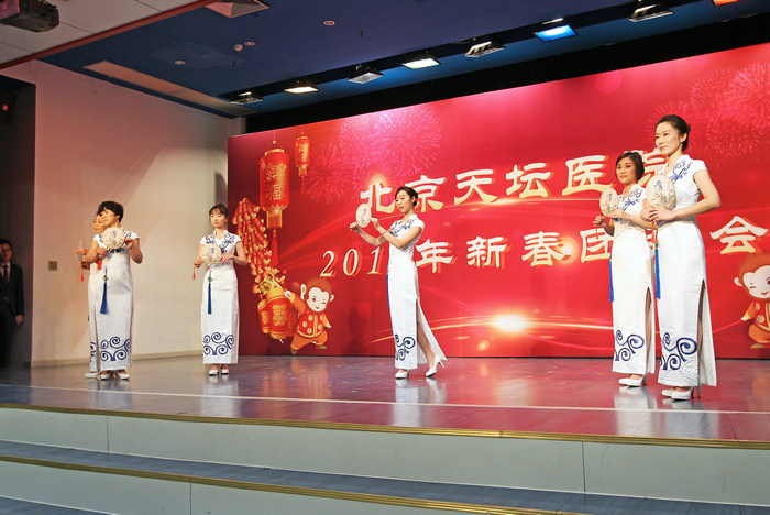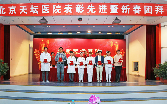 院长王晨、党委书记宋茂民和院所领导班子成员集体给全体职工拜年,对羊年全体职工付出的辛勤努力表示感谢!向大家致以新春的祝福!勉励职工在猴年继续为医院发展建设共同努力。