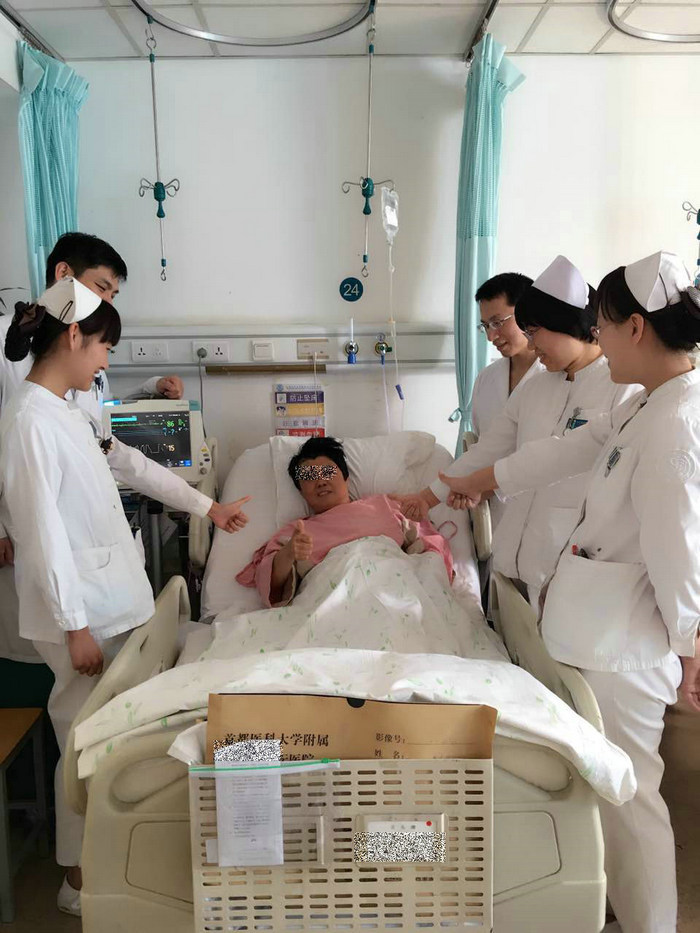 医护齐上阵,刚刚下夜班的护士也赶回来加入,轮流心外按压,虽已精疲力尽,汗流浃背,仍咬紧牙关坚持。人工通气始终紧密配合,一波波的抢救药物持续输入患者体内,大家知道,持续抢救就是人工保证患者循环供应,保证全身重要器官的存活;每一次除颤就是给心脏复跳的机会,给患者一次新的生的机会。终于在不懈的7次除颤后,患者的心电监测仪上终于蹦出了心脏复跳的波形。大家还没来得及欢呼,刚恢复自主心律随即出现室性心律失常,随时可能再次停跳。一直坚守抢救现场的心内科马岩医师立即给予胺碘酮静点,恢复了患者的窦性心率。抢救小组在持续奋战1个小时,终于迎来了患者呼吸心跳的稳定。一个小时后,患者意识渐有恢复,再一小时后,患者神志清醒,可以遵嘱四肢活动,随即转入重症监护病房治疗。抢救成功了,患者的生命保住了。